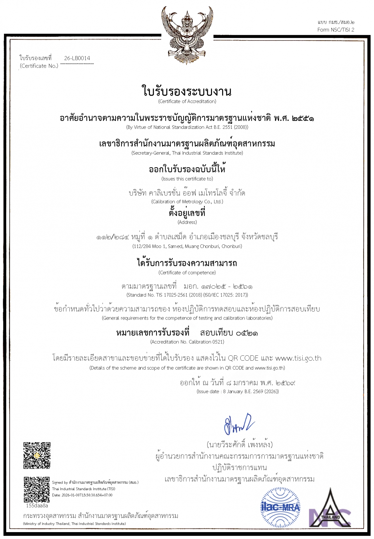 โดยทางห้องปฏิบัติการจะเป็นผู้ประเมินระยะเวลาดำเนินการ ณ วันที่ออกใบรับงาน ทางห้องปฏิบัติการได้เปิดให้บริการสอบเทียบเครื่องมือวัดใน 9 สาขา ซึ่งได้แก่